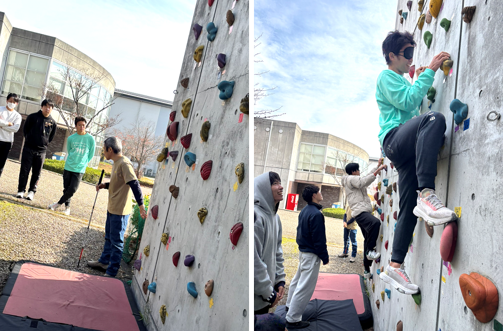 アウトドアスポーツコースでブラインドクライミング体験授業を実施!