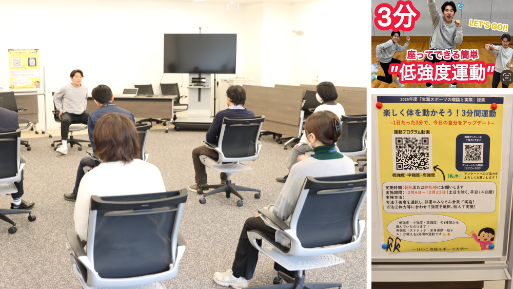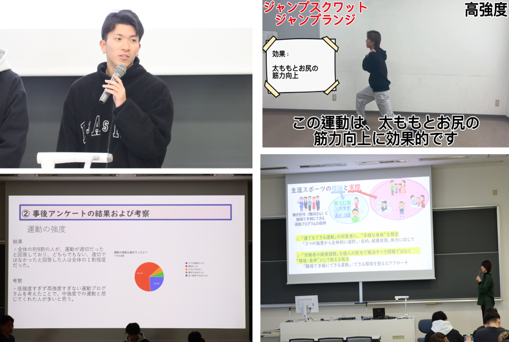 生涯スポーツコースの学生が「労働者への運動指導」をテーマに本学職員への運動指導を実践