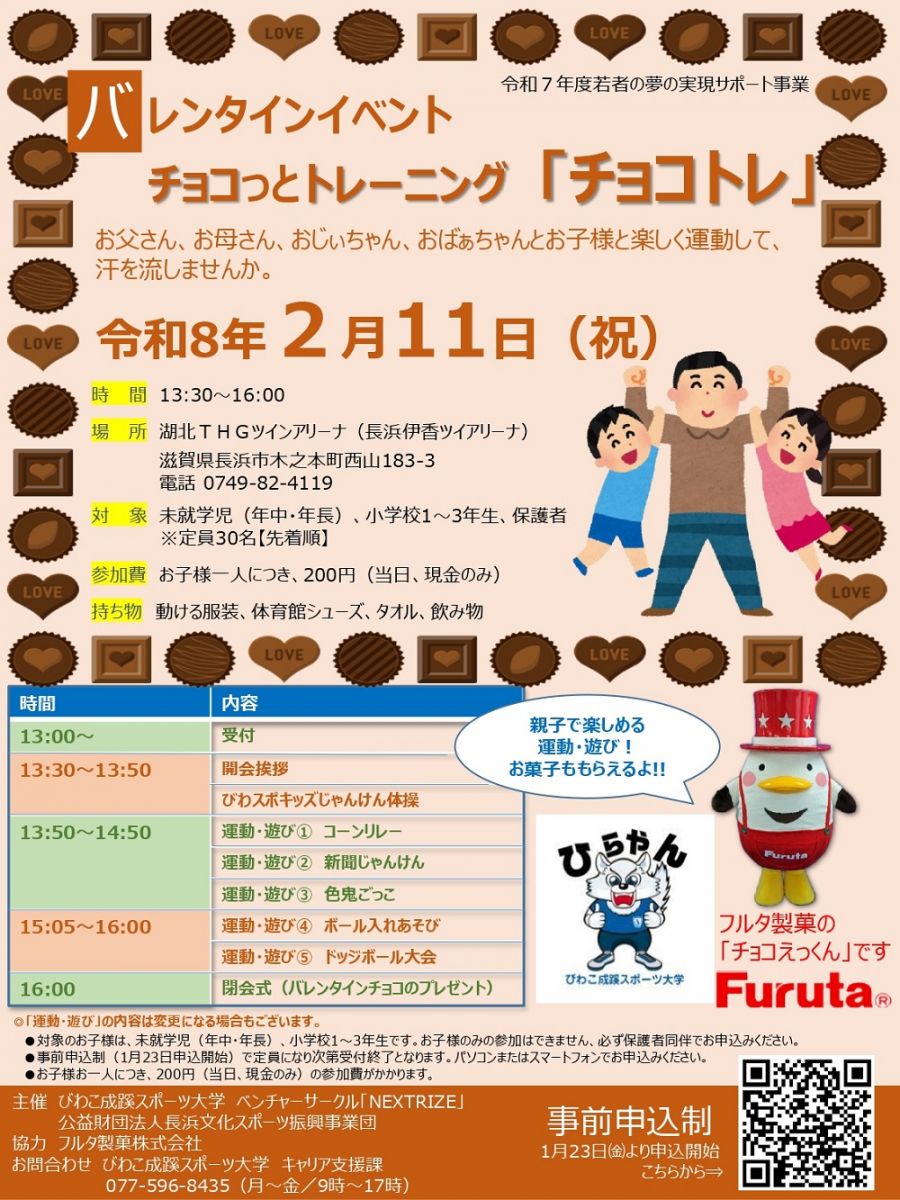 【開催告知】「バレンタインイベント チョコっとトレーニング『チョコトレ』」を開催!